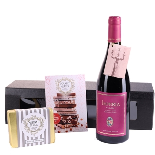 Das zartschmelzendes Konstanzer Nougat Dunkel (200g) und unser Imperia-Rotweincuvée bilden das perfekte Duo zum Verschenken oder um sich selber zu verwöhnen.